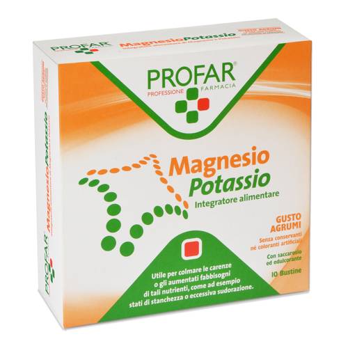 Magnesio Potassio Descrizione Integratore alimentare, al gusto agrumi, i cui componenti principali sono il magnesio ed il potassio che contribuiscono alla normale funzione muscolare. Il magnesio, inoltre, contribuisce alla riduzione della stanchezza e dell'affaticamento e al normale equilibrio elettrolitico. Ingredienti Buste: saccarosio, potassio bicarbonato; correttore di acidità: acido citrico; aroma, magnesio ossido, magnesio citrato; agente antiagglomerante: biossido di silicio; edulcorante: sucralosio. Compresse: acidificante: acido citrico anidro; potassio bicarbonato, magnesio ossido; regolatori di acidità: sodio bicarbo...