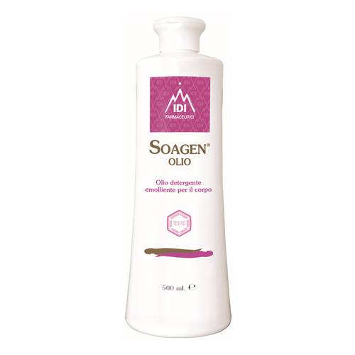 SOAGEN OlioDescrizione Olio detergente per il corpo con secchezza cutanea. Olio ad azione idratante ed emolliente per la detersione del corpo con secchezza cutanea tipica di condizioni costituzionali o per lavaggi frequenti con detergenti aggressivi e per esposizione solare prolungata. Deterge senza aggredire aiutando a mantenere integra la funzionalità della barriera cutanea. Modalità d'uso Il prodotto può essere usato per il bagno e la doccia. Bagno: versare il prodotto nella vasca, immergere il corpo per 5-10 minuti, uscire senza risciacquare. Doccia: versare il prodotto sulla spugna o su un guanto massaggiando delicatamen...