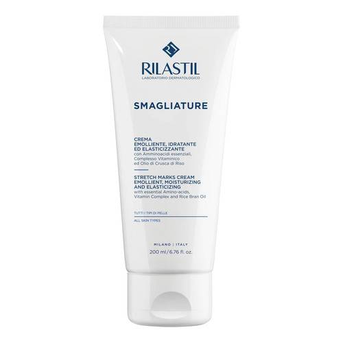 RILASTILSMAGLIATURE CREMA Descrizione Rilastil Smagliature Crema Pelli Sensibili è un trattamento attivo per contrastare le smagliature, appositamente studiato per pelli sensibili e reattive, soggette a prurito ed allergia. Previene e contrasta le smagliature di colore bianco o rosso/violaceo su addome, fianchi, cosce e seno (sodium butyroyl hyaluronate) con una spiccata azione elasticizzante, idratante ed eutrofica (insaponificabile olio di oliva, sodio ialuronato e PCA sodico). Nutre in profondità la pelle, rendendola più elastica e morbida (burro di karité e vitamina E). Non comedogenico e ipoallergenico. Testato in gravid...